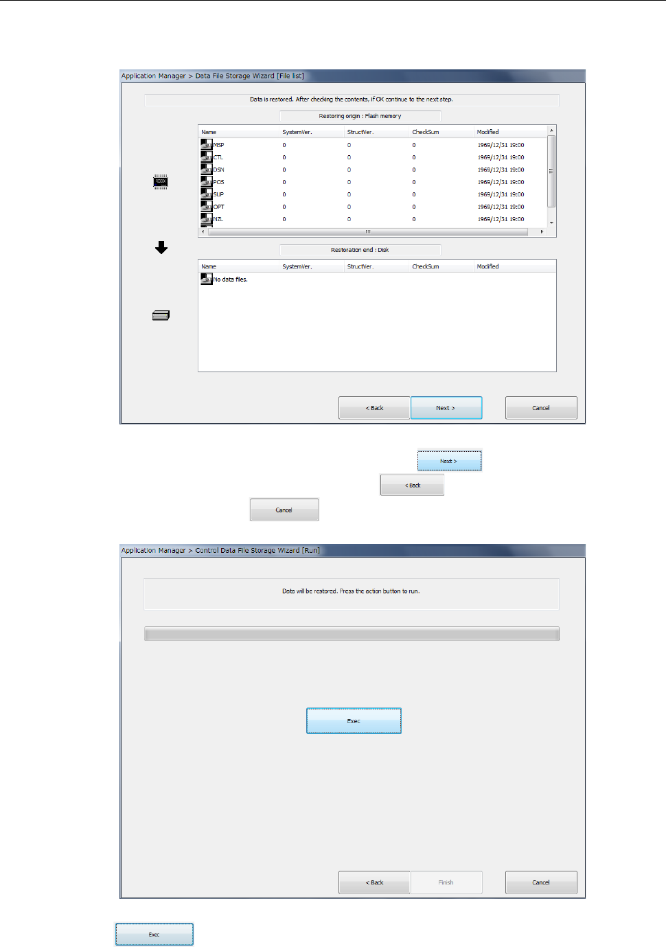 Pa r t 2 D et ail ed Des c r i p ti on of Each Function C hapter 1 3 Supp l em en t ar y I nf o rm ati on f or C r eating a Production P rogra m 13 - 14 Restorin g contr ol da ta f rom the fl ash mem o ry 13.2.3 W hen yo…