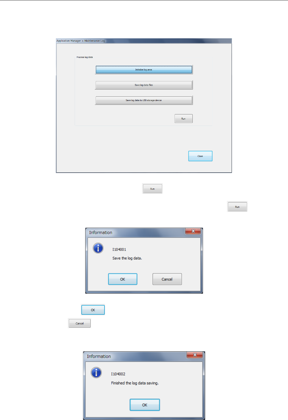 Select <Initialize log area> and press the button. Then, the contents of the existing