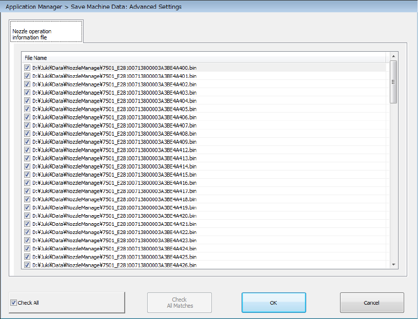 By default, checkmarks are put in the check boxes of all nozzle operation information files.