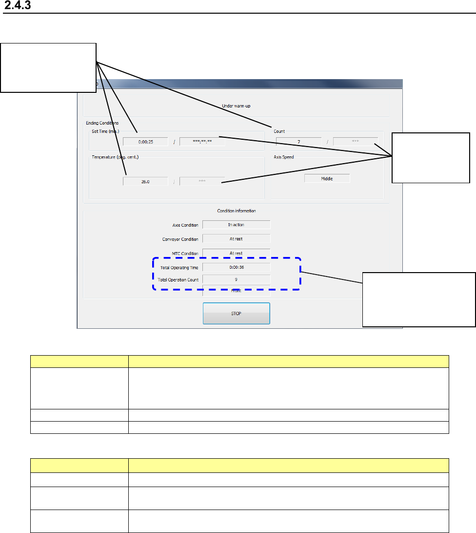 warming-up condition, Time to Count or vice versa, the total warming-up time or number of