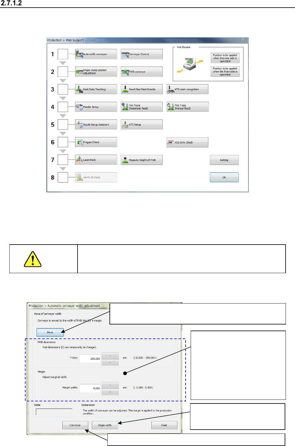 When you press the <Auto-width conveyor> button, the “Automatic conveyor width adjustment”