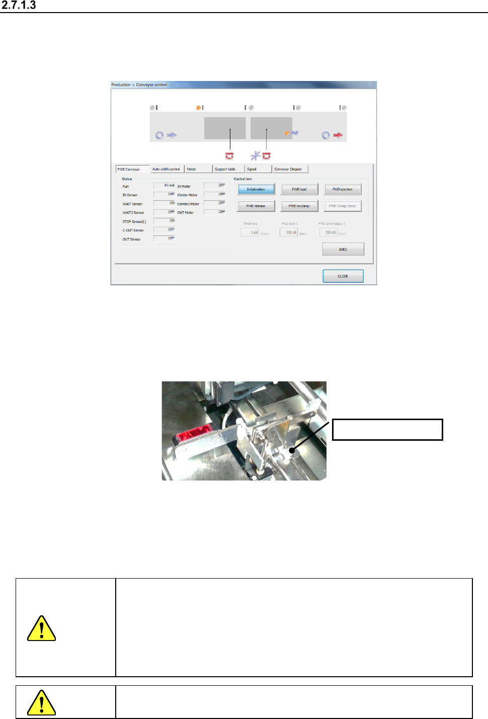 If the PWB has a notch, etc. at its front end and the centering of the PWB is unstable, move the
