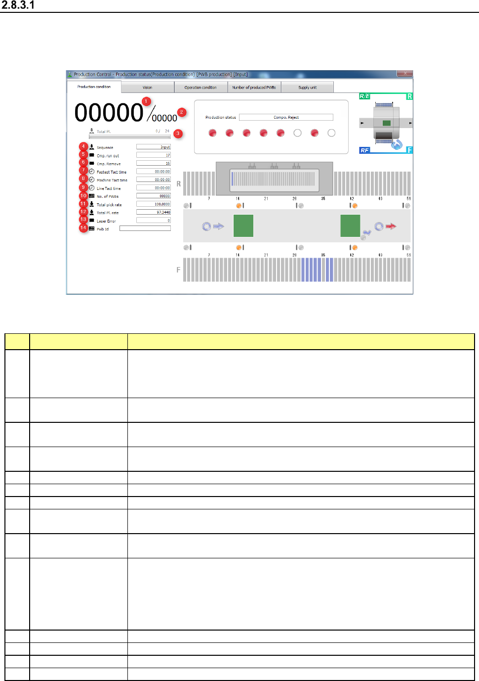 command, the “Production status (Production condition)” screen appears. This screen shows the