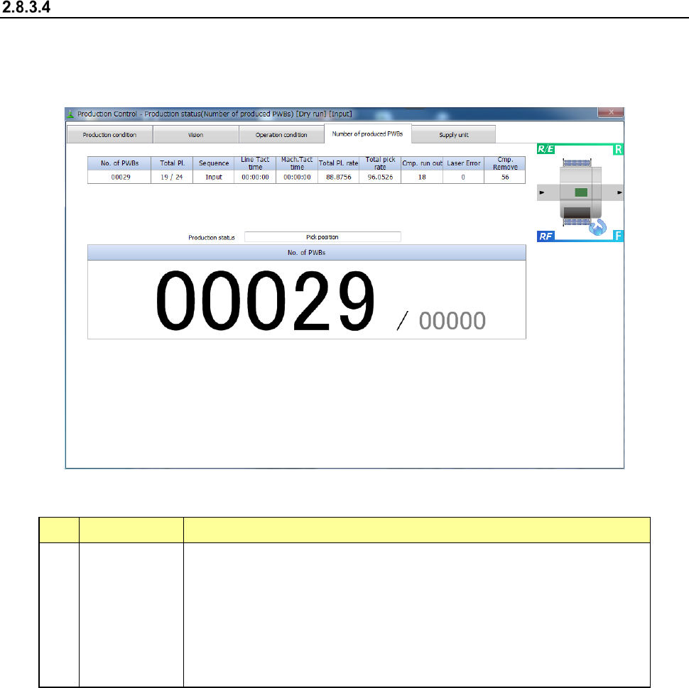 PWBs)] command, the “Production status (Number of produced PWBs)” screen appears.