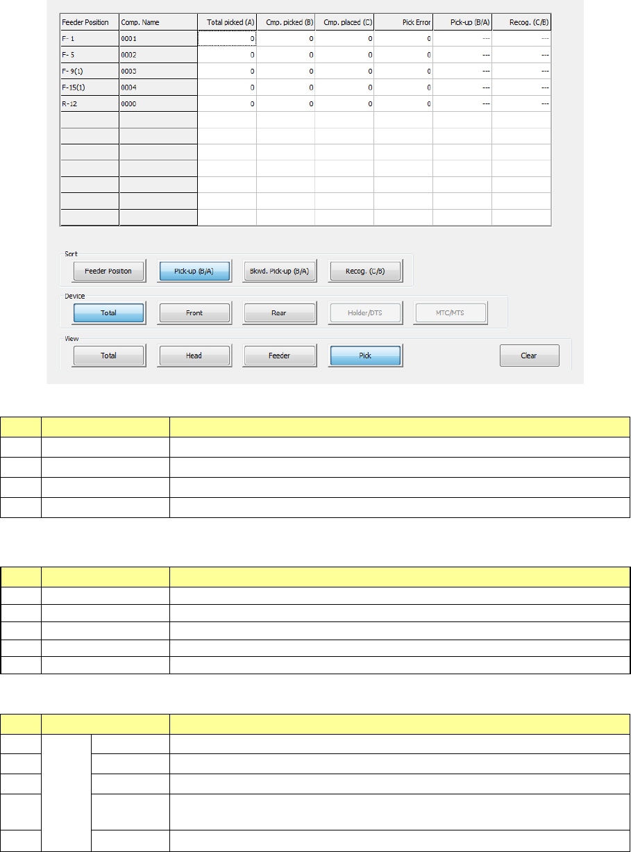 Part 1 B asic O peration Chapter 2 Pr oduction 2- 59 4) Manageme nt Info (Pick) The system s hows “the p ick - up rat io per comp onent suppl y positio n (Pick - u p ratio = Num ber of pick - ups / (Number of pick - ups …