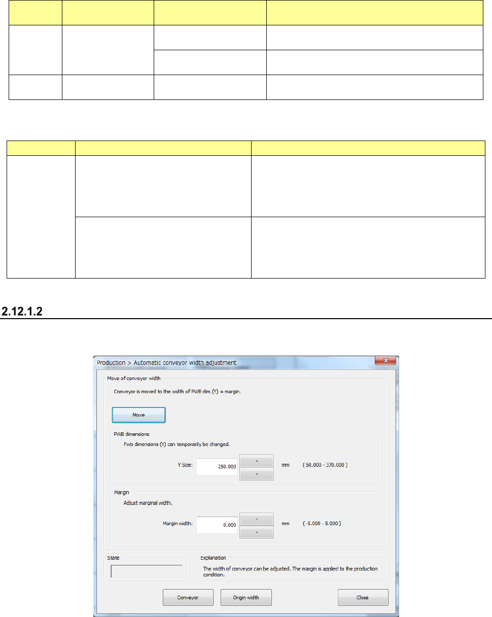 See the descriptions of Section 9.4.1 “PWB conveyor” of Chapter 9 “Manual Control.”