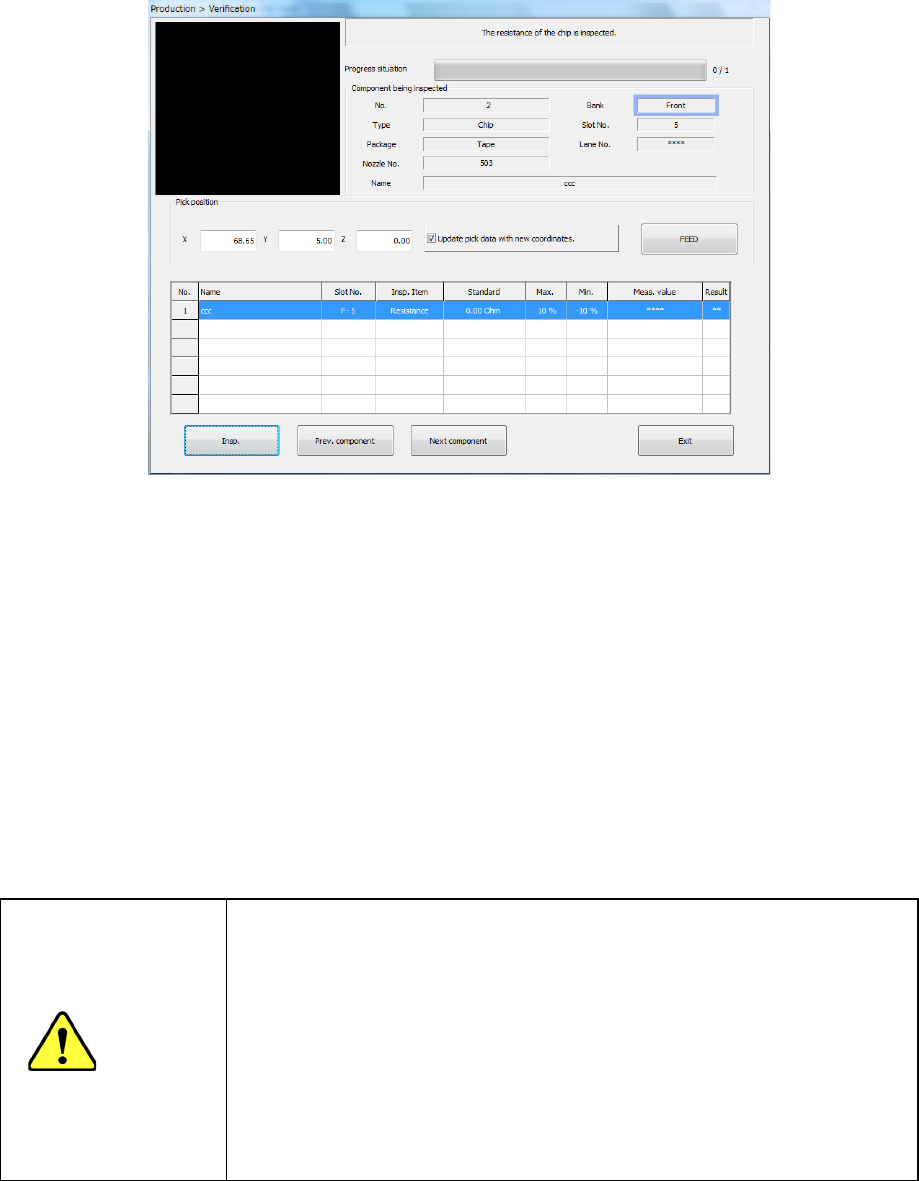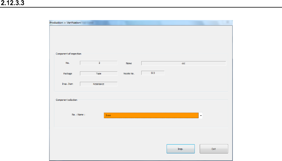 Part 1 B asic O peration Chapter 2 Pr oduction 2- 111 Verify Current check (1) S electi ng a compon ent 1) “Component of inspectio n” and “Com ponent selection” Data on the comp onent appears in these fiel ds. Names of c…