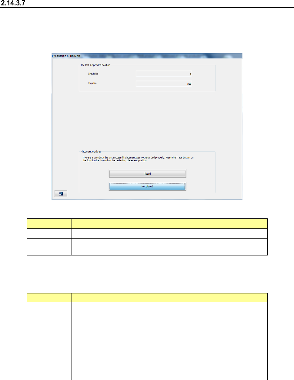 Select whether a component is already placed on the position from which the system resumes