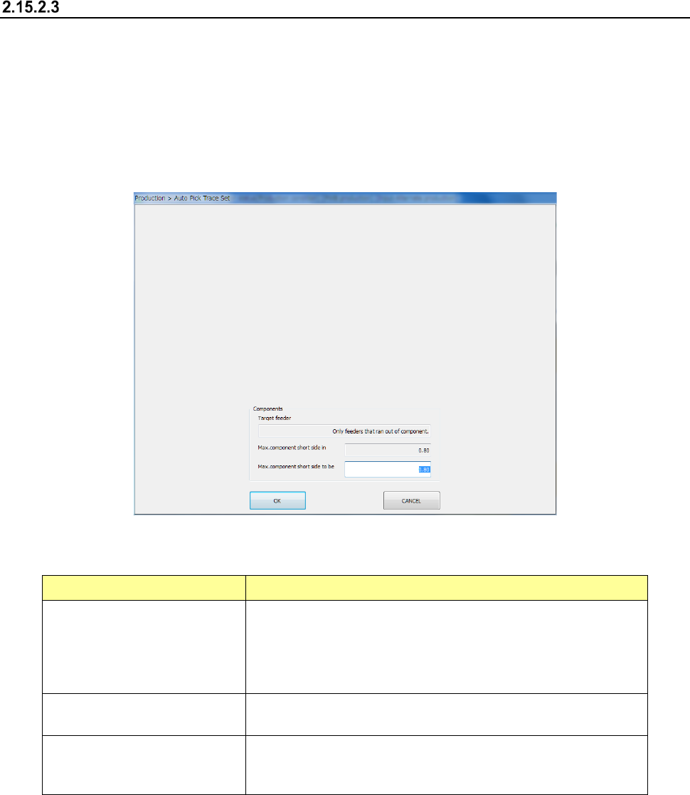 Operation option is checked, the system displays the “Auto Pick Trace Set” screen on the