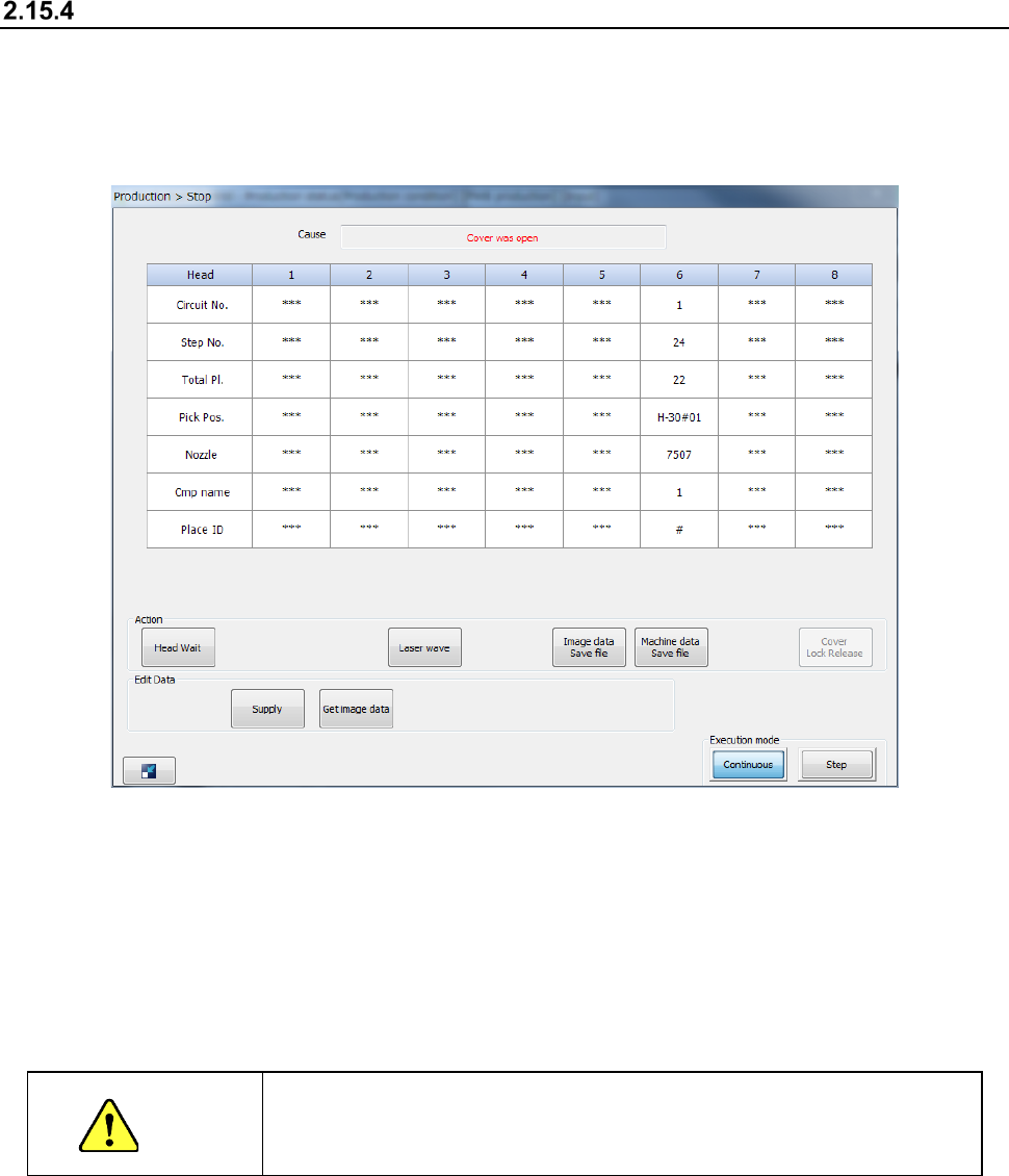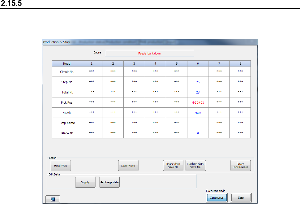 Part 1 B asic O peration Chapter 2 Pr oduction 2- 160 If the f eeder bank mo ves down When the fee der bank mo ves down during PWB pr oductio n, the system stops the c urrent production t emporari l y an d displays t he …