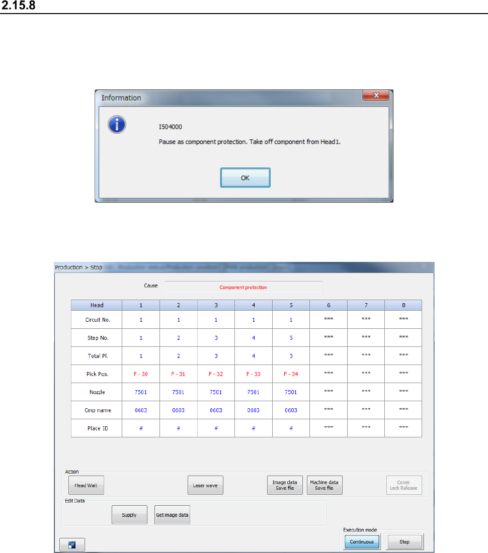 Part 1 B asic O peration Chapter 2 Pr oduction 2- 162 Component protection If a recognitio n error occur s at a component for whic h “Protect” is specified on the “Compone nt data (Packag ing style)” scr een of a product…