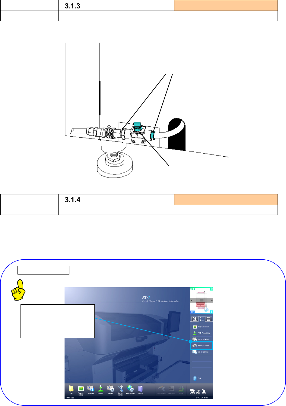 1) Turn on the power of the machine, select the "Manual control" items, and check that operation is