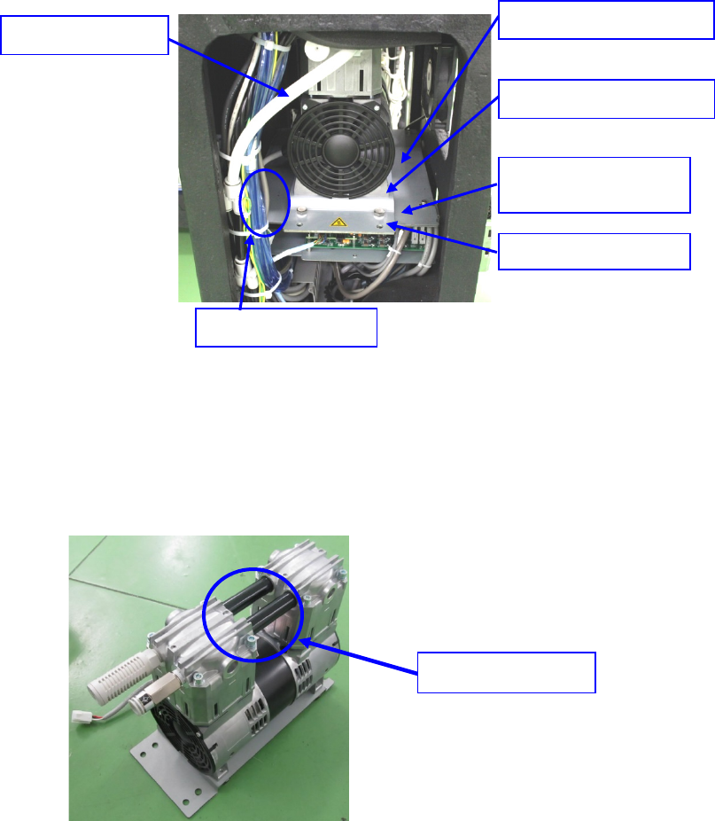 Part 1 Basic Operat ion Chapter3 D aily maintenance 3- 38 3) R emov e the air tube and harnes s (power ground wi re) connec ted to the v acuum pu m p and then remove t he hexagon h ead shoulder bo lts (M6 x 13 mm) and he…