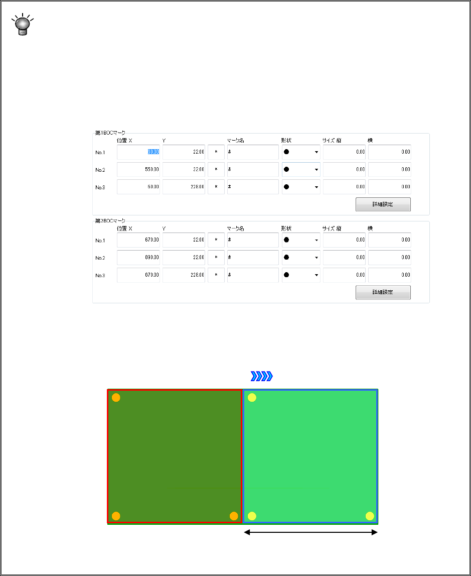 When you enter the XY coordinates, the “Mark name,” “Shape,” “Size Length” and “Width”