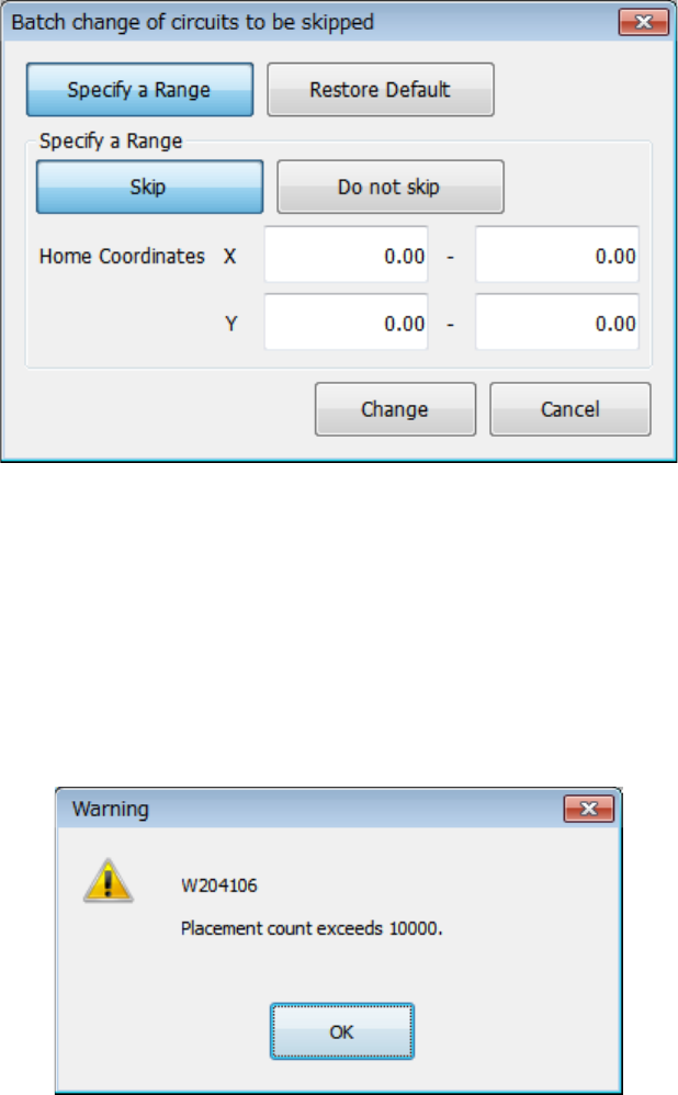 When you select the <Batch change of circuits to be skipped> button, you can specify circuits to