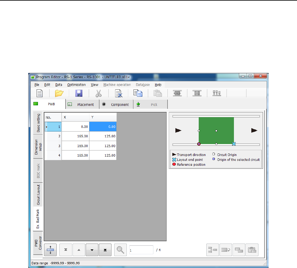 For the extended bad mark, enter the "bad mark" position for each circuit from the "PWB reference