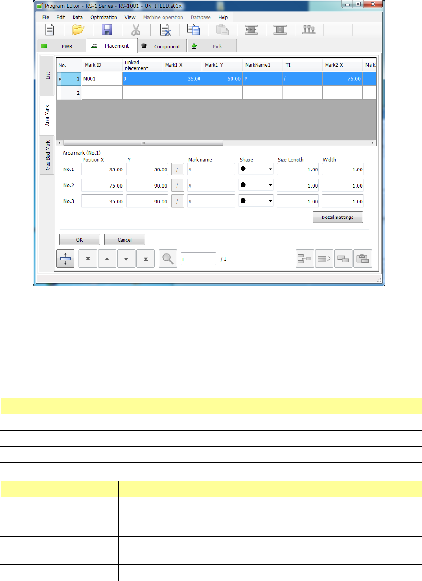 the “List” screen or when you select the “Area Mark” tab, the “Area Mark” editing screen appears.