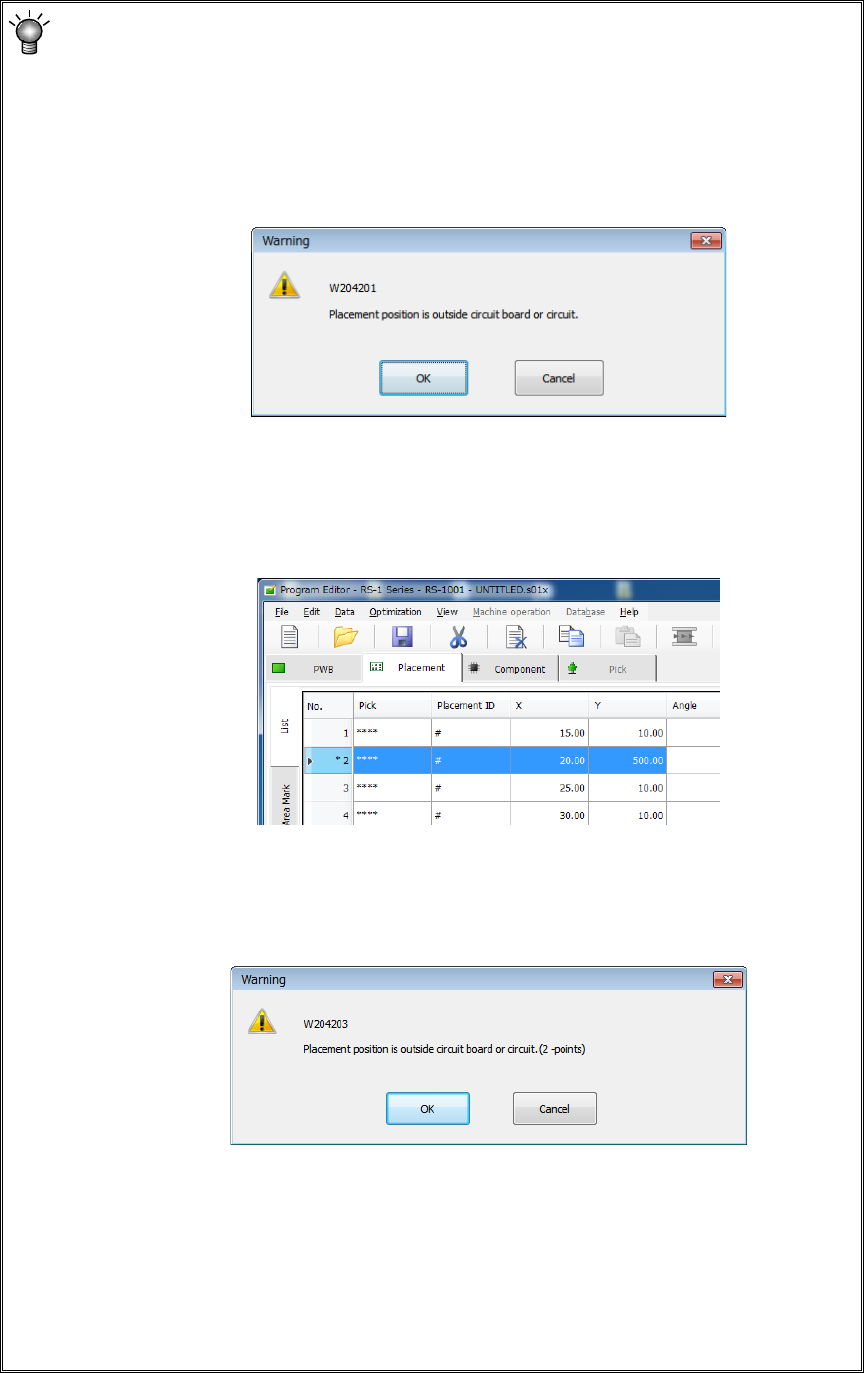 * If the area check error occurs, check the data entered on the “Placement” data