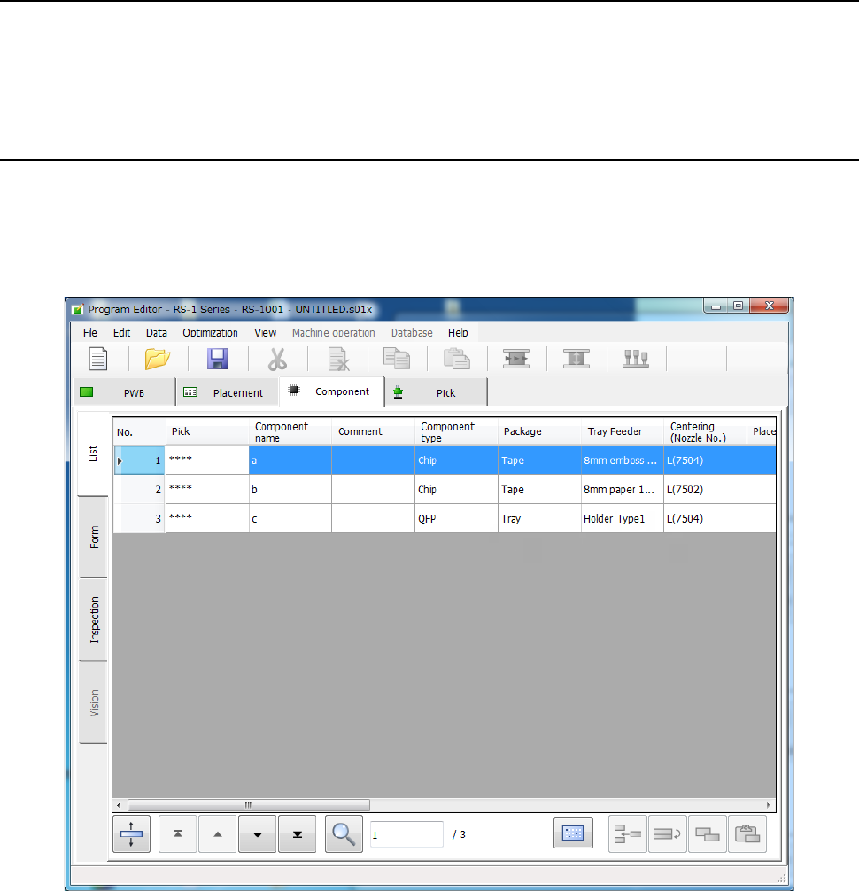 Part 1 B asic O peration Chapter 4 Cr eating a Produc tion Progra m 4- 44 4.3.5 Component data On the "Com ponent" dat a screen, enter the d etailed information on t he "Com ponent nam e" that was ent…