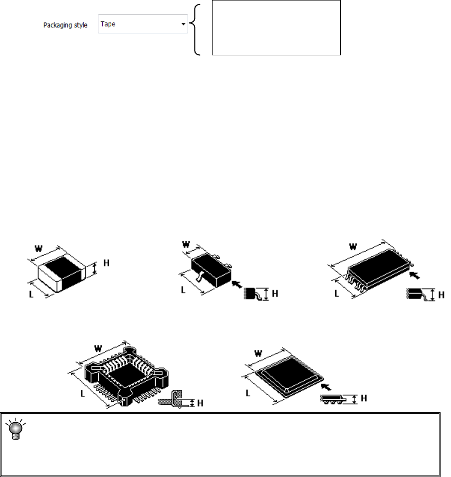 From the displayed "Packaging style" list, select a component supply device.
