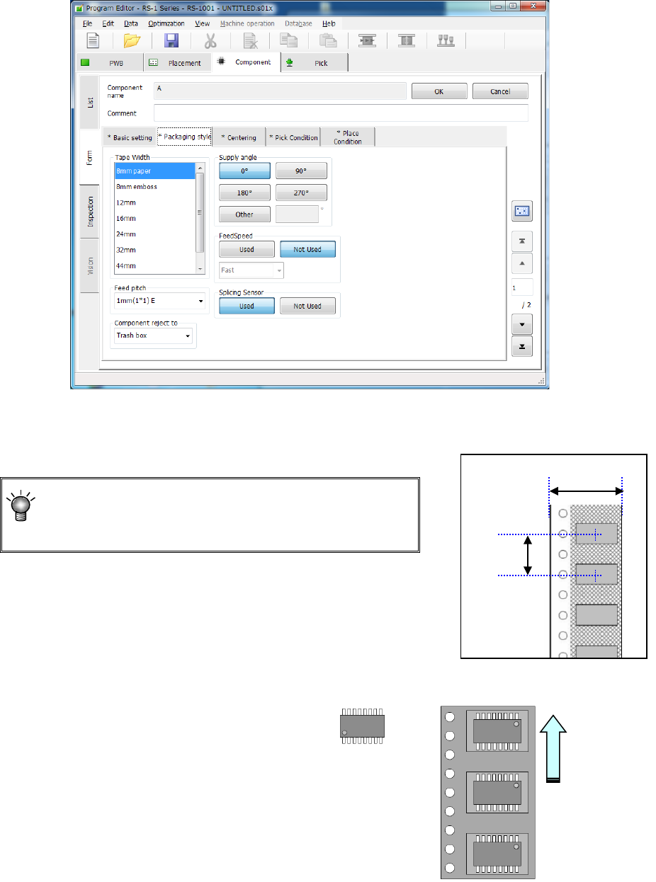 Select the tape feeding pitch.