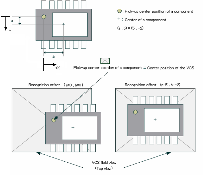 Part 1 B asic O peration Chapter 4 Cr eating a Produc tion Progra m 4- 66 ③ Rec og. O ffse t The system m oves the pi ck - up cent er posit i on of a c omponent (norma lly the cent er of a component) to the center posit …