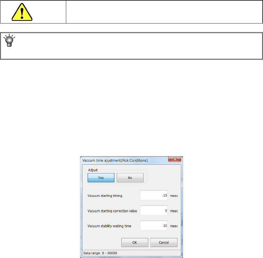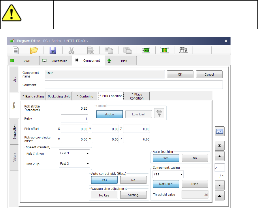 If you set “0” here, the nozzle may not reach a component and may not pick up the