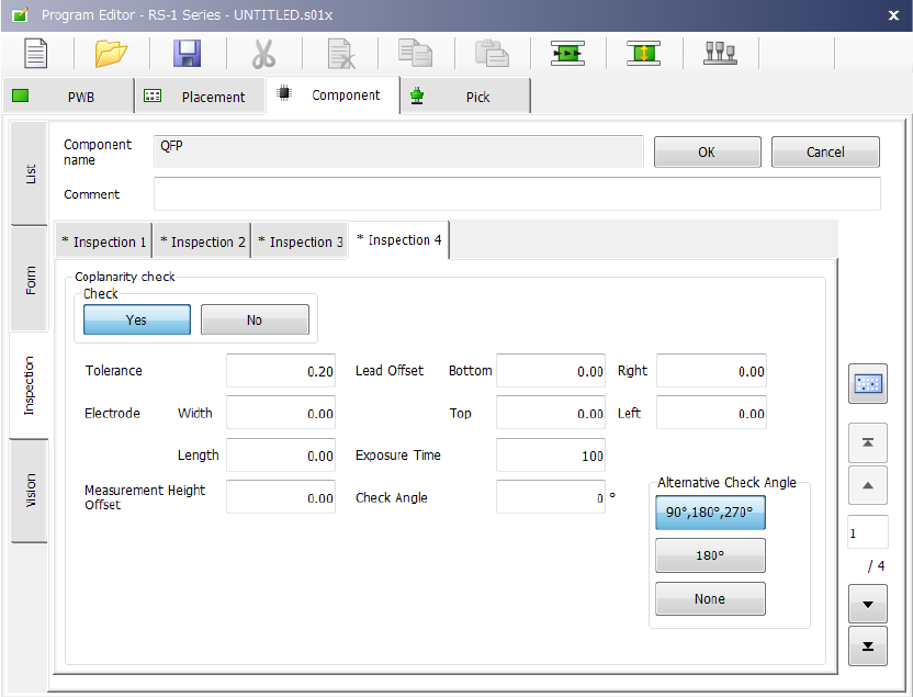 Set the “Coplanarity check” data on this tab.