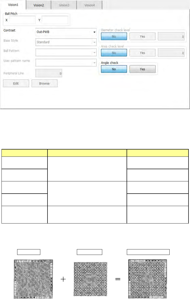 The “Vision 1” tab allows you to set the ball pitch, the contrast (recognition type), the base