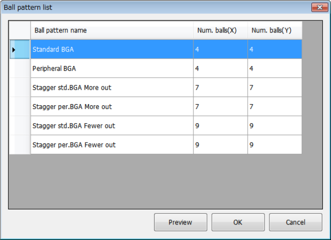 This button displays the “Ball pattern list” dialog box.