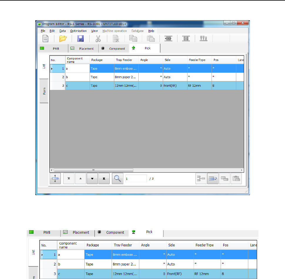 You can edit the eight items, “Angle,” “Side,” “Position,” “Lane,” “Feeder Type,” “Status,” “Pick