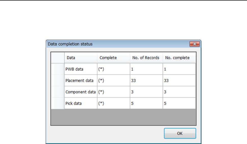 When you select the [Data]-[Data completion status] commands from the menu bar, the following
