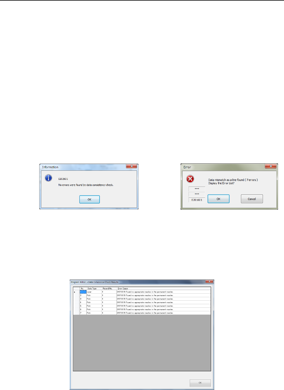 (“Data Type”), the record number (“Record No.”), the name of the error item and the cause