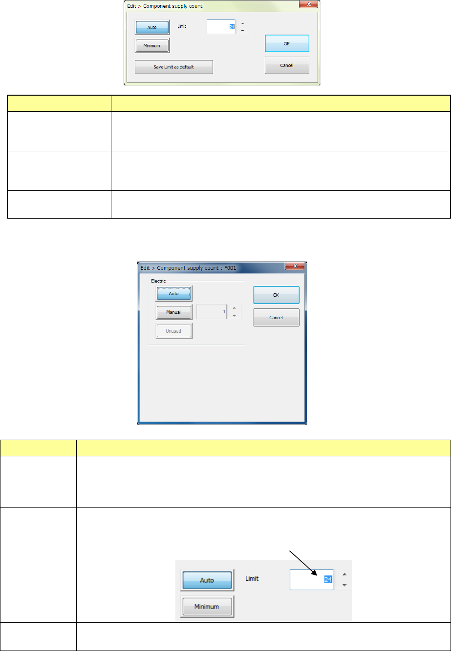Auto The system automatically sets the number of components that are specified to be supplied.
