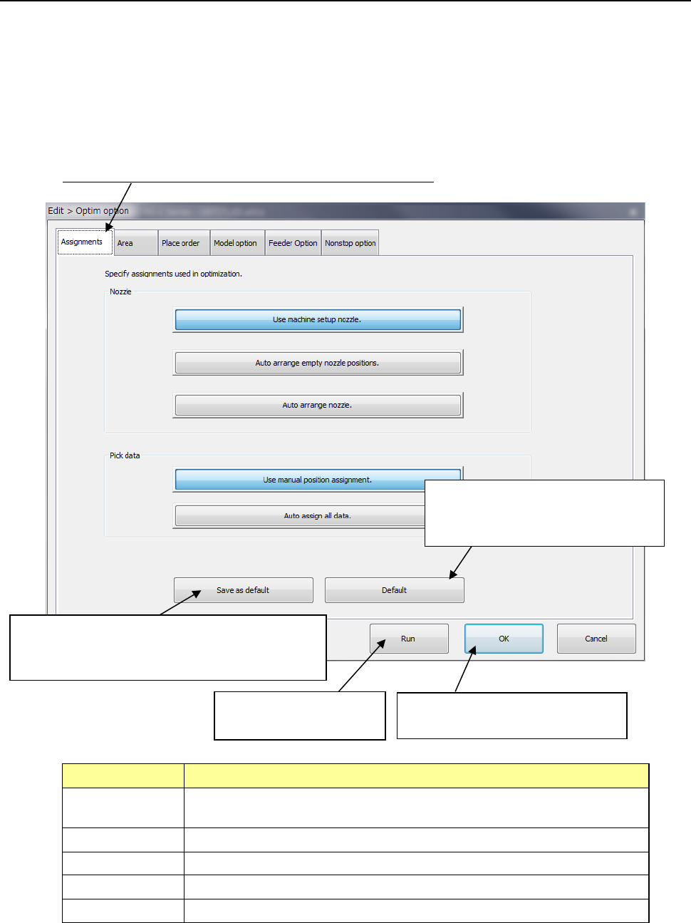 Assignments Specifies the option to be checked with the Optimization utility when it assigns a