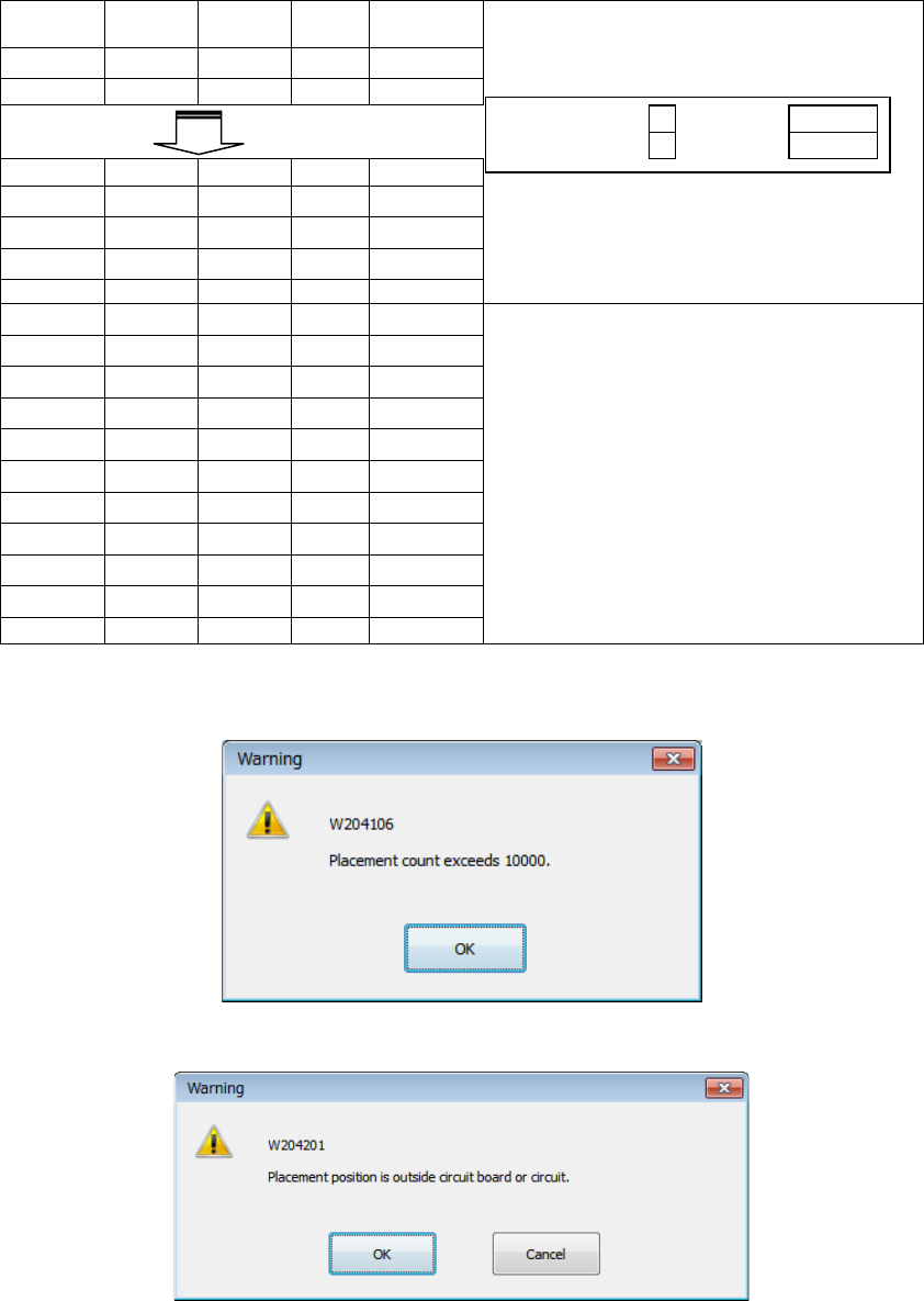 If the placement position is outside the board or the circuit, the message like one shown below