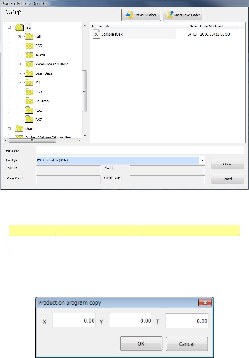 When you select the [Production program copy] command from the menu, the “Open File” dialog
