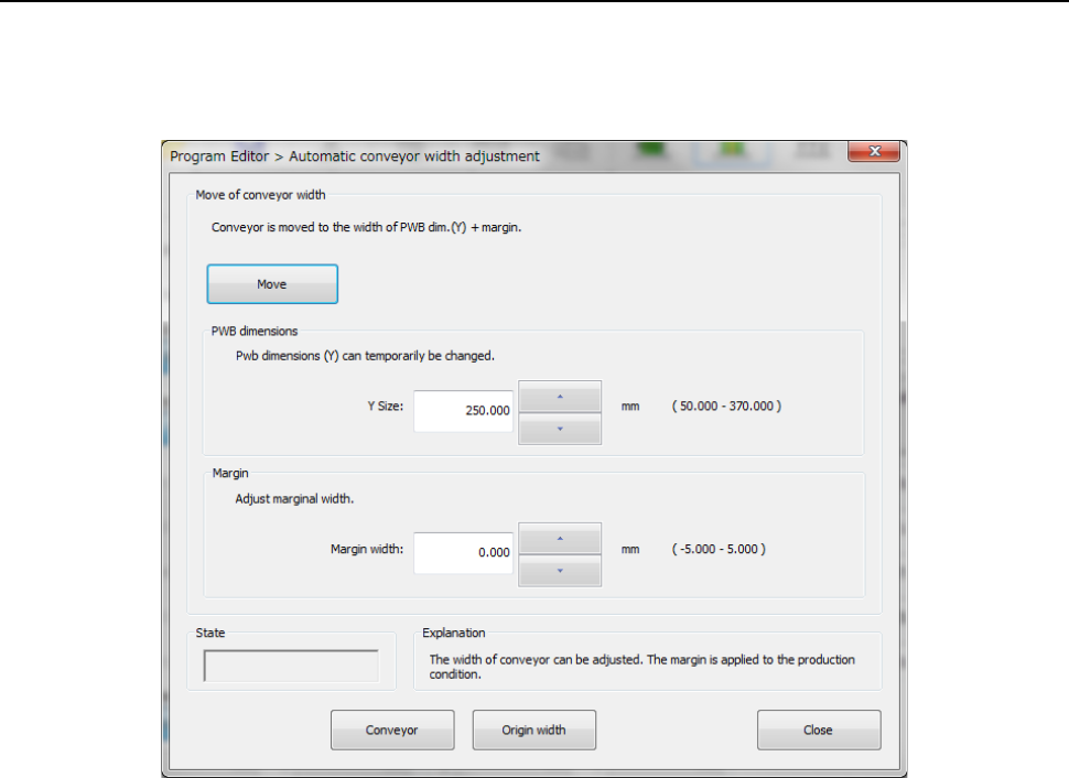 This button changes the board transport width to the “PWB dimensions” + “Margin.”