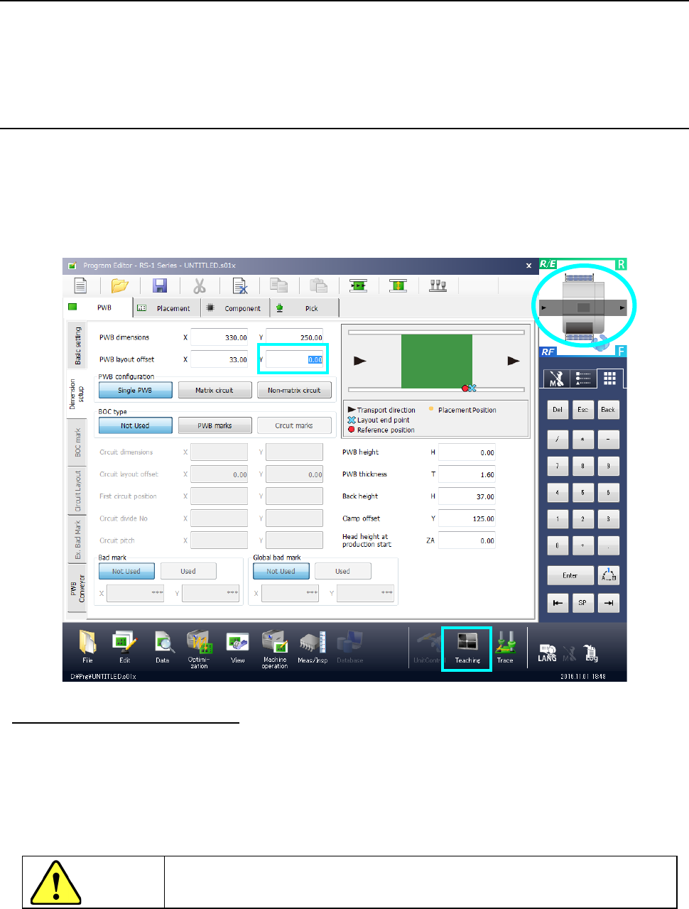 Part 1 B asic O peration Chapter 4 Cr eating a Produc tion Progra m 4- 177 4.5.4 Teaching T eaching is an operat i on for adjusting m ainly a pos ition such as a c omponent pl aceme nt position while mon itoring its im a…