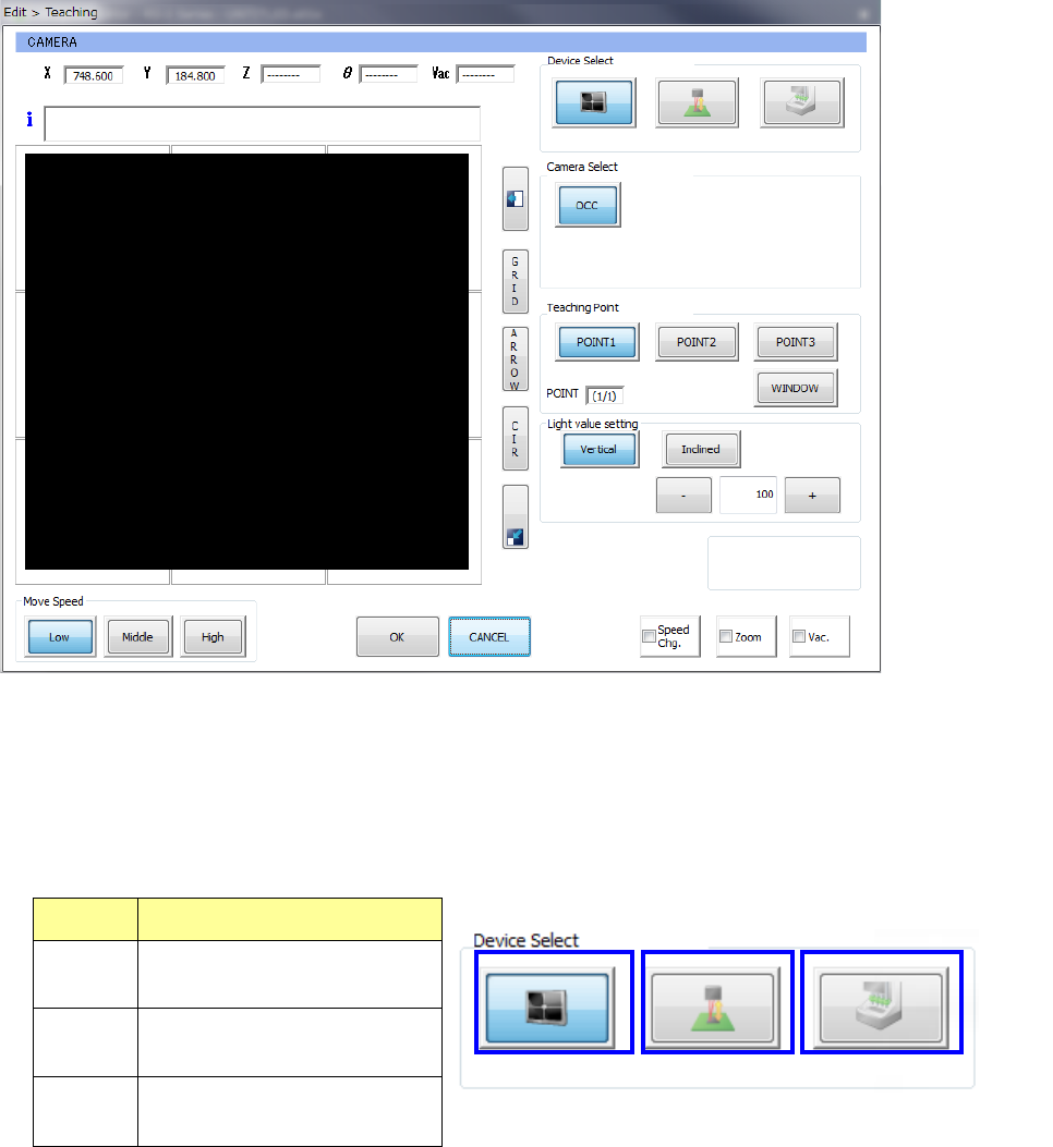When you specify a teaching device to be used, the specified teaching device moves to the