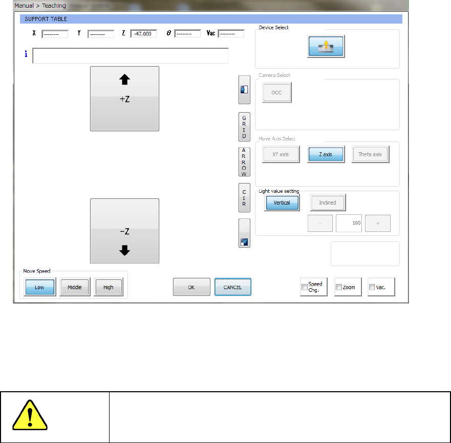 The current coordinates to which the support table has moved is displayed on the upper