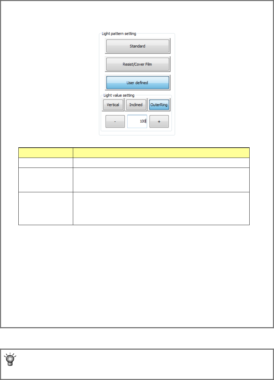 When you use the <User defined> button, enter the light value directly.