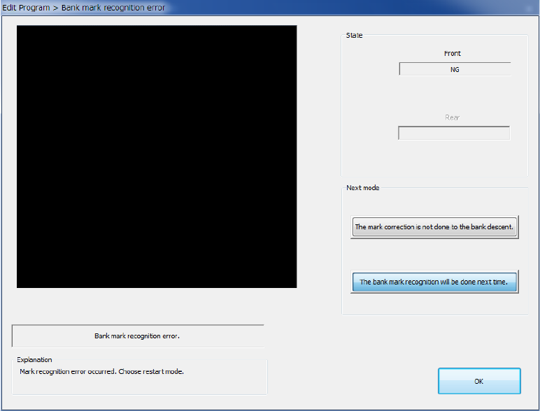 If the system fails to recognize a bank mark, the corresponding error message is displayed