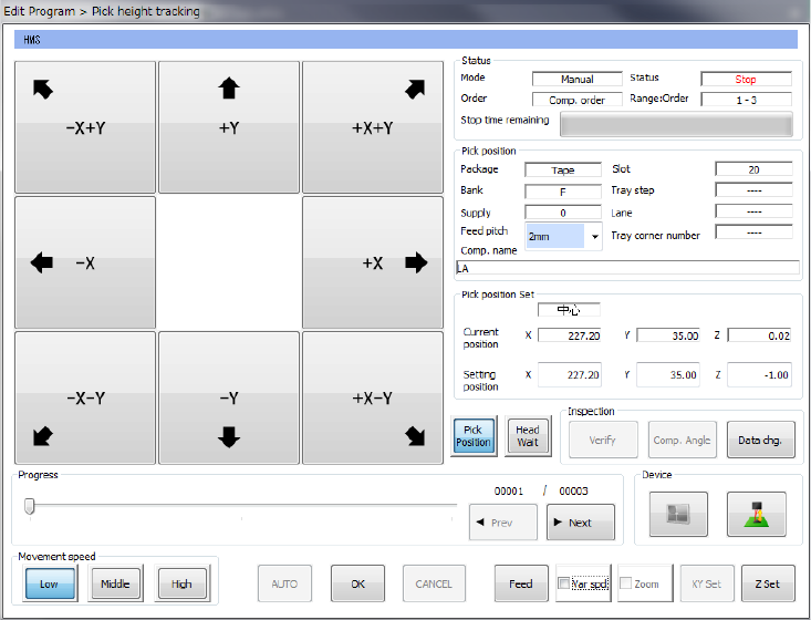 While the camera is tracking each component pick-up height, the screen like the one shown below
