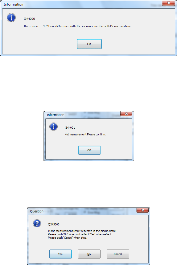 The system displays the following five error/question dialog boxes during automatic teaching.