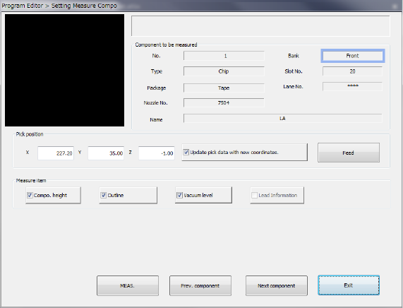 is not displayed. So, you cannot change the component pick-up position, feed the