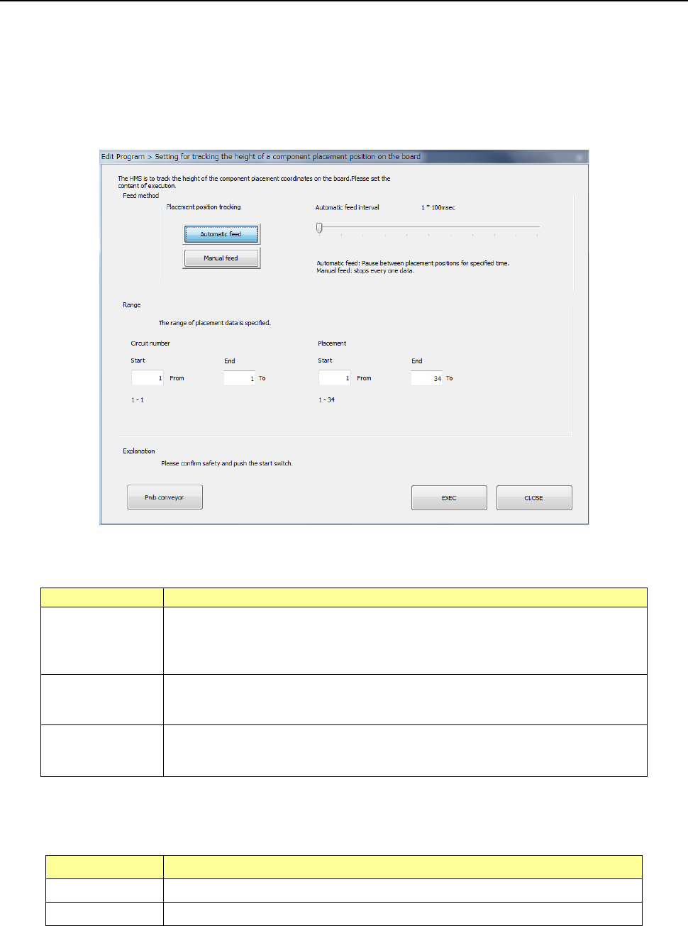 Specify the tracking range of the Placement data. By default, all placement positions are to