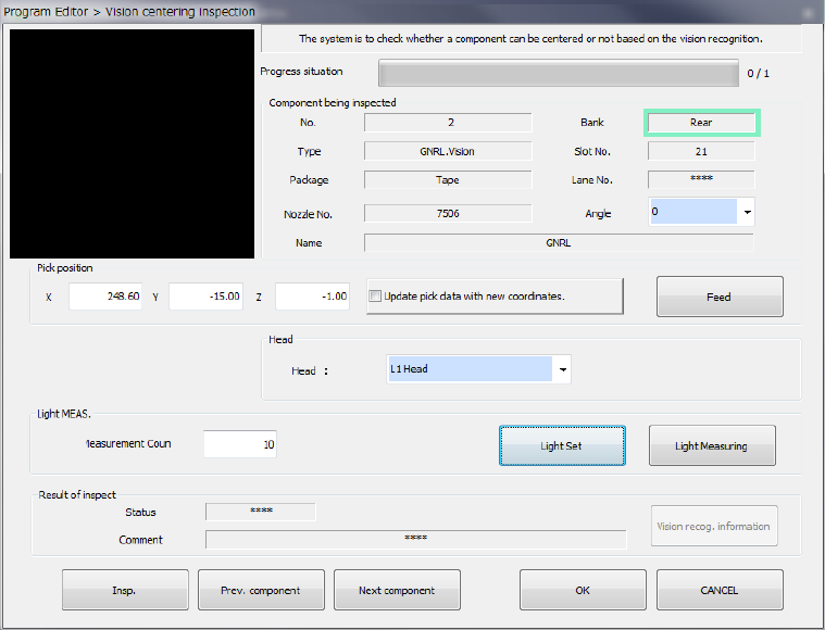 Part 1 B asic O peration Chapter 4 Cr eating a Produc tion Progra m 4- 246 4) Light MEAS. If a component connect be recognized with the defa ult lighting brightne ss, the optimum lighting con di tions ar e obtained. • Li…