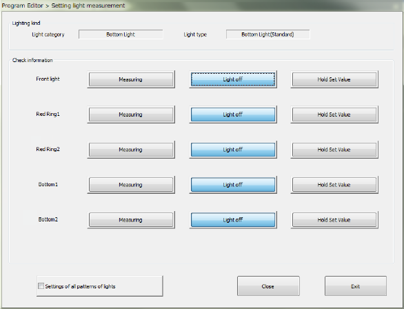 When you check off the check box “Setting of all patterns of lights,” the system measures