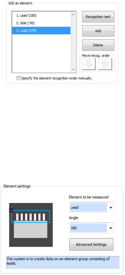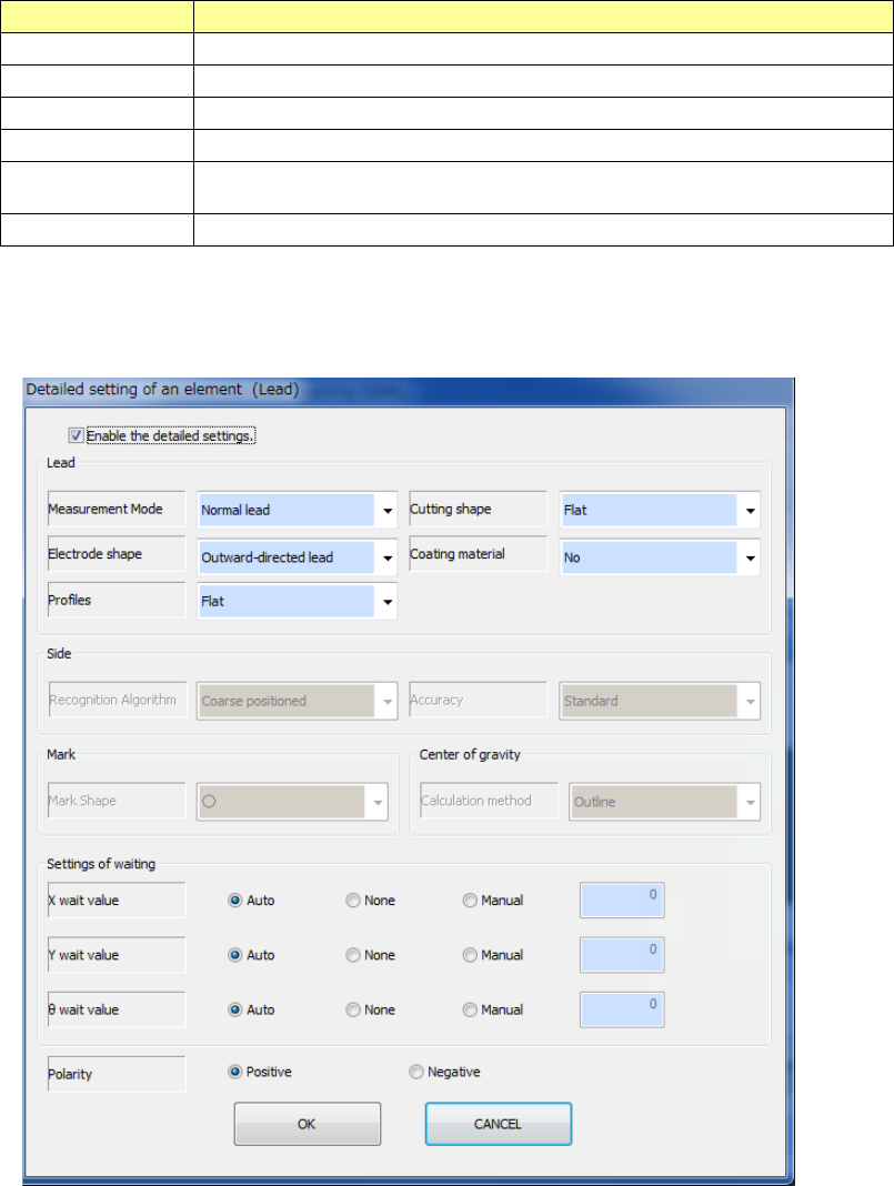 - When the element type is “Lead,” “Side,” “Corner,” “Mark” or “Center of gravity”